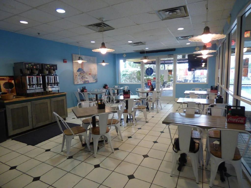 This resort has a private beach. The cafe and Tiki bar are open March 1-October 31 and you never have to leave the resort. Several restaurants are within walking distance for take out. Walmart and Winn Dixie have grocery pickup.