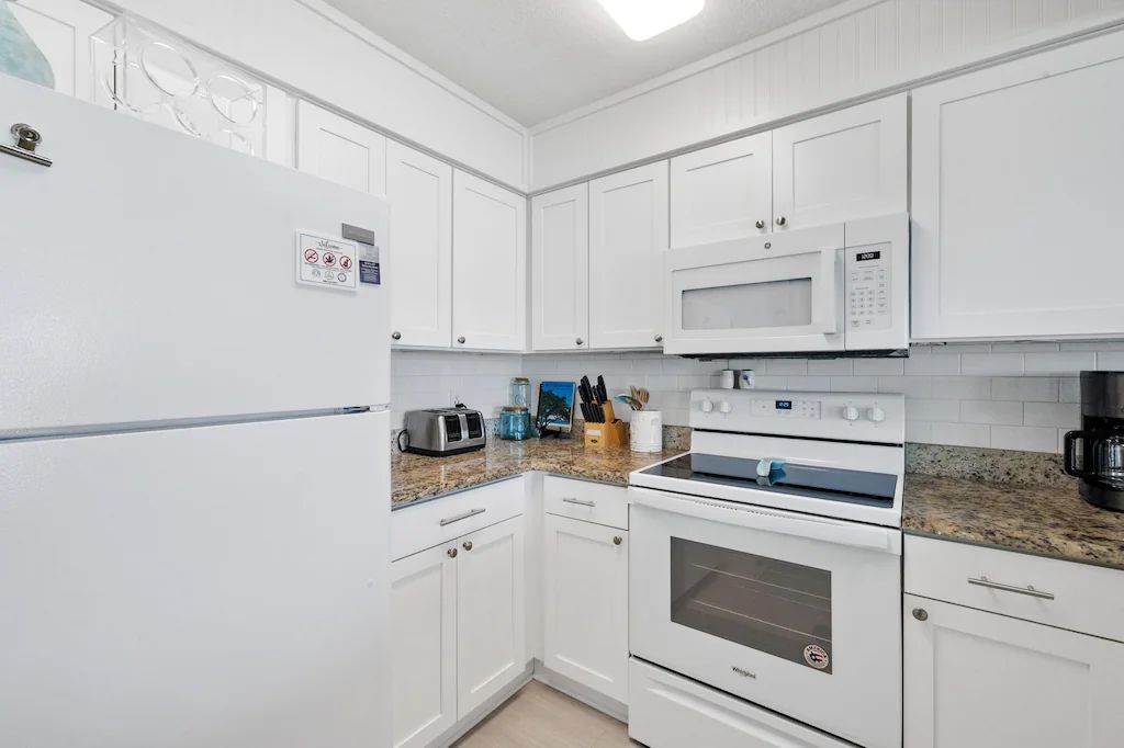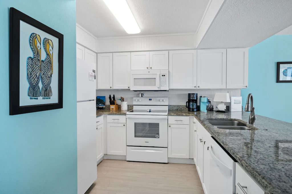Kitchen is chef-ready and furnished with everything you would need for a great vacation. Linens, dishes, cookware, etc. are furnished. There are both Mr. Coffee and Cuisinart Keurig-compatible coffee makers. There is a rental company on the beach for chairs and umbrellas (not included in rental). Don't forget your beach towels!