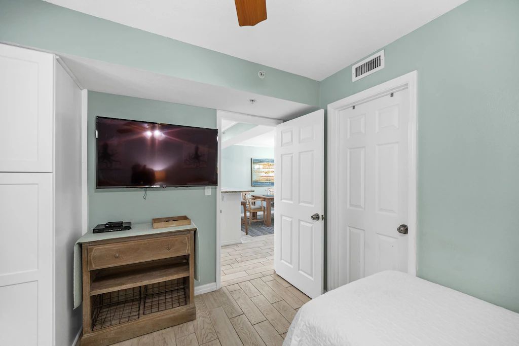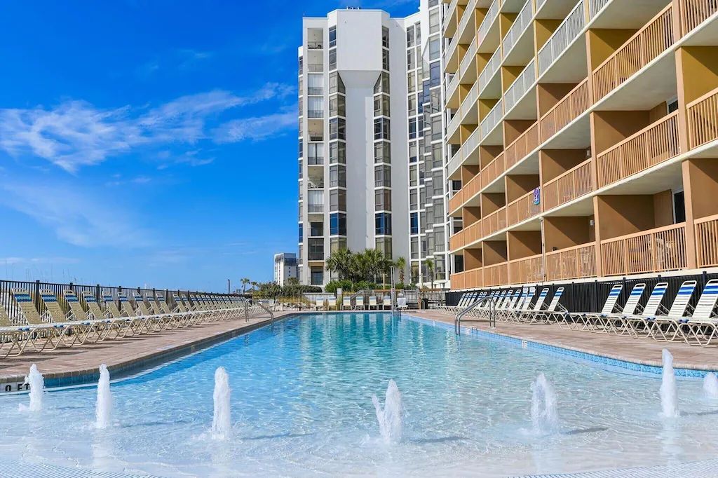 It has a great view of the ocean, beach, and pools. The perfect location. It is near the elevators with easy access to all of the Resort's amenities, including the indoor/outdoor pool, Market Cafe, two outdoor pools, beach, workout facilities, tennis/pickleball courts, Tiki bar, game room, a basketball goal, and two hot tubs. One of the large outdoor pool and indoor/outdoor pool are heated during the winter months.