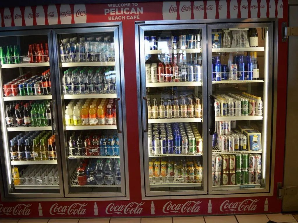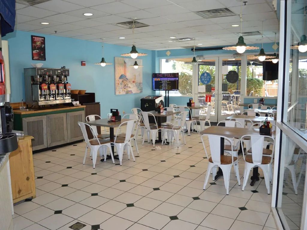 Pelican Beach has a Market Café which has a large menu consisting of breakfast items and sandwiches, burgers, salads, pizza, etc. for lunch. It also carries incidentals such as sunscreen, sodas, beach toys, beer, and snacks.