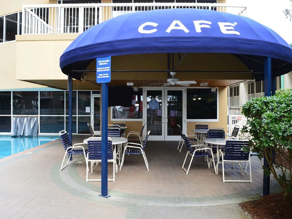 Pelican Beach has an excellent café with pastries, coffee, pizza, sandwiches, salads, etc. and incidentals such as sunscreen, sodas, and beach toys. There are also a Tiki bar, indoor/outdoor pool (heated in the winter), separate outdoor pool, kiddie pool, exercise room, and sun deck. There are laundry facilities located near unit and elevators. It has everything you need for a great stay and you never have to leave the property.