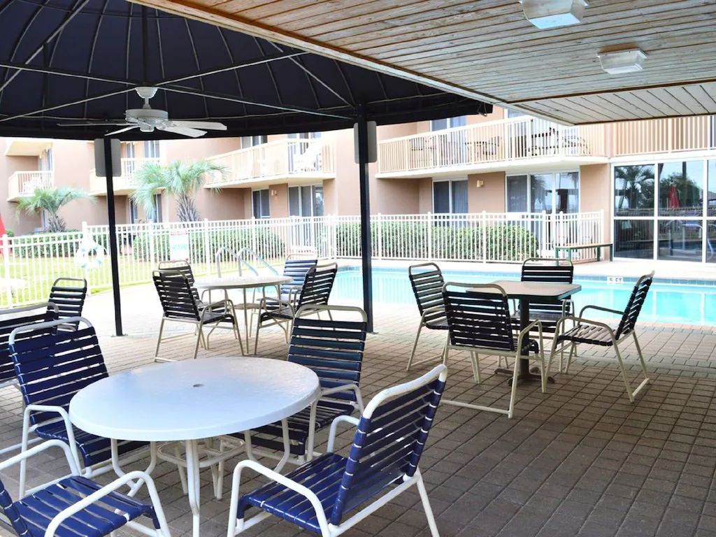 This resort has a private beach. The cafe and tiki bar are open and you never have to leave the resort. Several restaurants are within walking distance for take out. Walmart and Winn Dixie have grocery pickup.