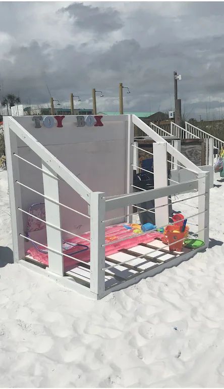 Check out the toy box located on the beach before buying beach toys. It is a box where you can borrow sand toys, boogie boards, etc., and return them when you are finished. Or, if you purchase beach items and want to leave them behind for the enjoyment of others, you can place them in the toy box also.