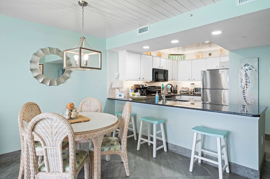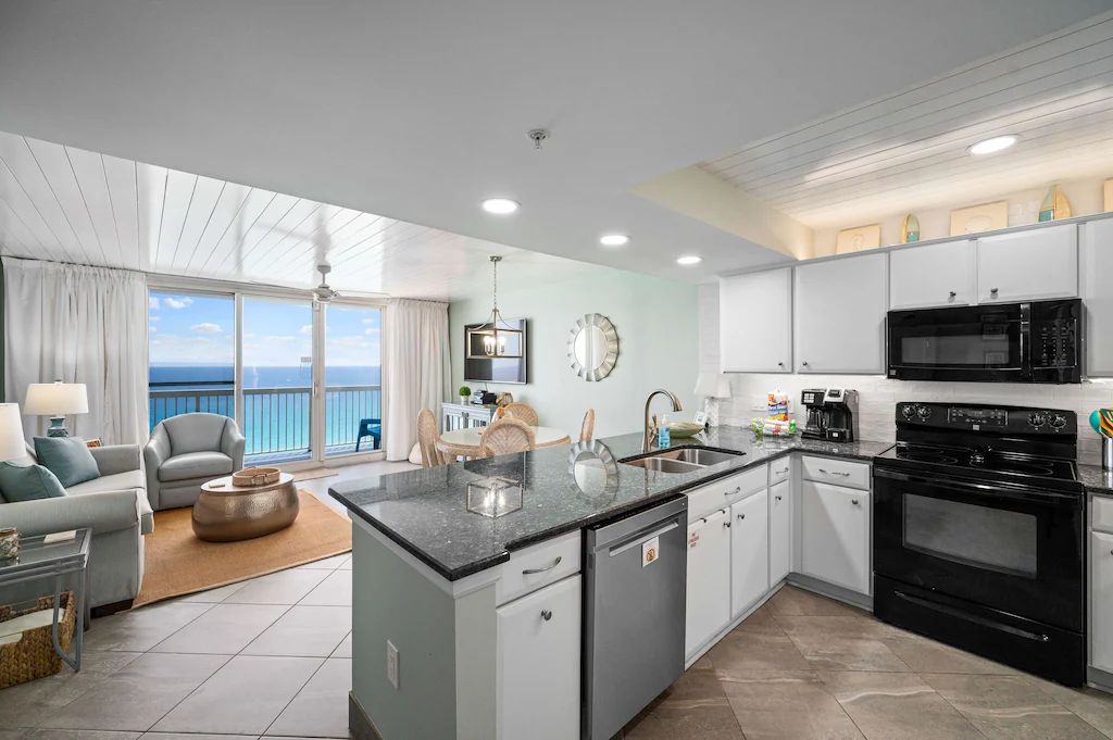 Remodeled in December, 2022, this 16th floor unit has everything you need for a wonderful vacation. The views are beautiful and the balcony is perfect for relaxing and dolphin watching as well as watching the sunrises and sunsets. It is in a convenient location for the restaurants and shops, several of which are within walking distance. See below for a list of contents in the unit.